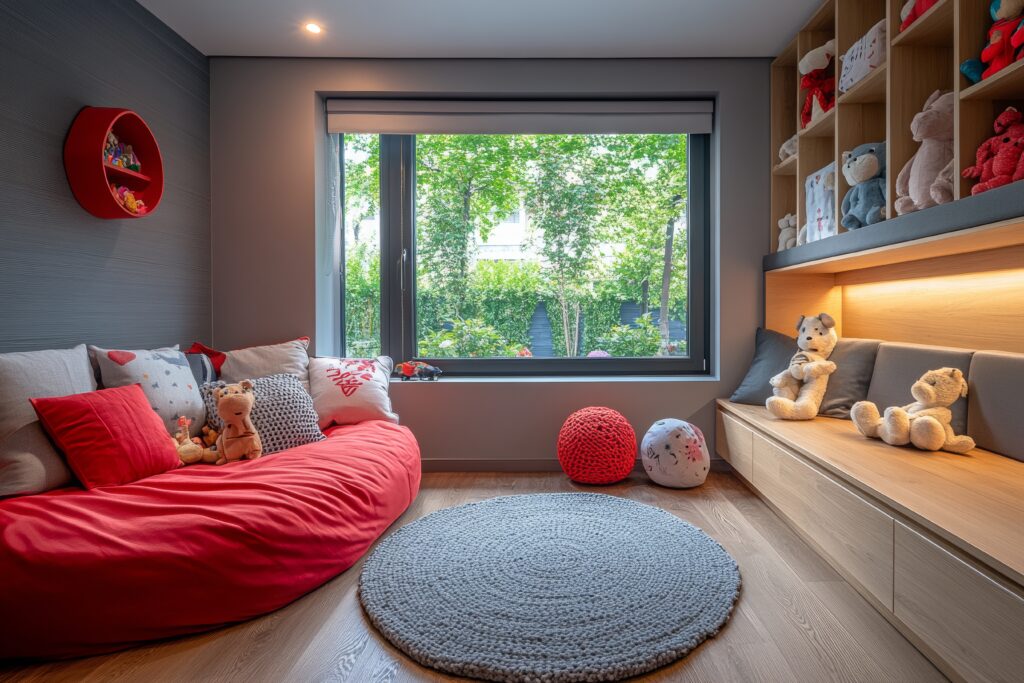 Для детской комнаты лучше выбирать современные стеклопакеты с улучшенными характеристиками. Они помогают удерживать тепло зимой, защищают от перегрева летом и снижают уровень шума с улицы.