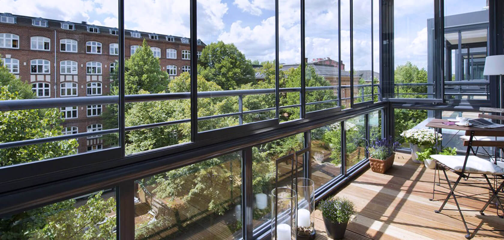 - Французский балкон. Вариант, при котором стеклянная рама устанавливается во всю высоту лоджии. Парапет снимается и заменяется стеклопакетами с соответствующим профилем. Окна могут быть тонированными и светоотражающими, чтобы с улицы не было видно, что происходит внутри.