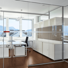 Так называются конструкции из стекла, обычно занимающие высоту от пола до потолка и служащие для разделения рабочего пространства. Из них можно организовать полноценные кабинеты для конкретных отделов, комнату для совещаний и пр., при этом не нужно делать дорогой и сложный ремонт.
